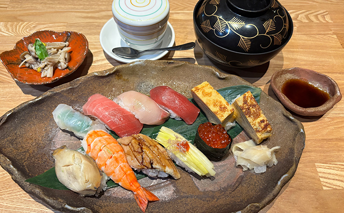 にぎり寿司・小鉢・茶碗蒸し・椀物・デザート
